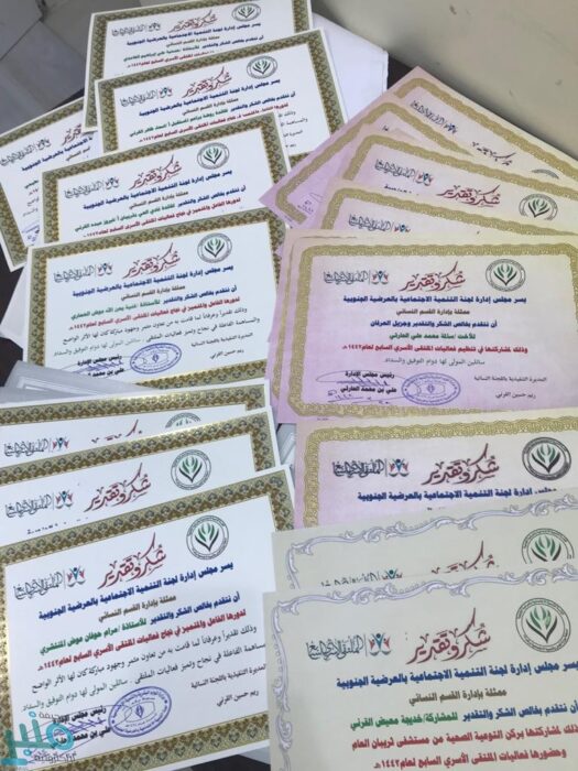 وفي نهاية الملتقى، كرمت مديرة اللجنة النسائية في العرضية الجنوبية ريم القرني جميع المشاركات في الملتقى.