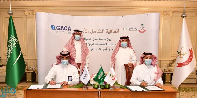 أبرمت رئاسة أمن الدولة والهيئة العامة للطيران المدني، اليوم، اتفاقية “التكامل الأمني في مجال أمن المسافرين والشحن الجوي”، بحضور معالي رئيس أمن الدولة الأستاذ عبدالعزيز بن محمد الهويريني، ومعالي رئيس الهيئة العامة للطيران المدني الاستاذ عبدالهادي بن أحمد المنصوري.