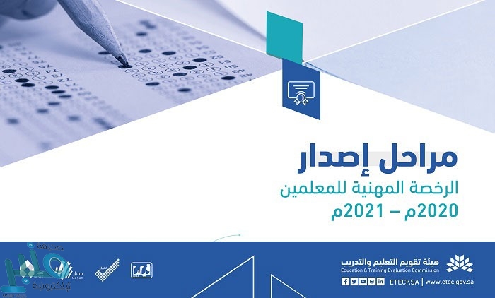 وكشفت الهيئة أنه سَيُدَشنُ نظام إصدار الرخص المهنية للمعلمين والمعلمات في 1/12/2020م، وسيفتح الموقع لتسجيل المعلمين والمعلمات الذين اجتازوا اختبار الكفايات في 6/12/2020م، أما المعلمين والمعلمات الذين لم يسبق لهم التسجيل أو دخول اختبار الكفايات؛ فسيفتح لهم مجال التسجيل في اختبار الرخصة بتاريخ 15/12/2020م، وستكون الفترة الأولى لاختبارات الرخصة المهنية (اختبار التخصص) خلال الفترة من 23-30/1/2021م، بينما الفترة الثانية لاختبارات الرخصة المهنية (الاختبار التربوي العام) خلال الفترة من 20-26/3/2021م، وسيكون موعد إعلان النتائج وإصدار الرخصة المهنية في 30/5/2021م.