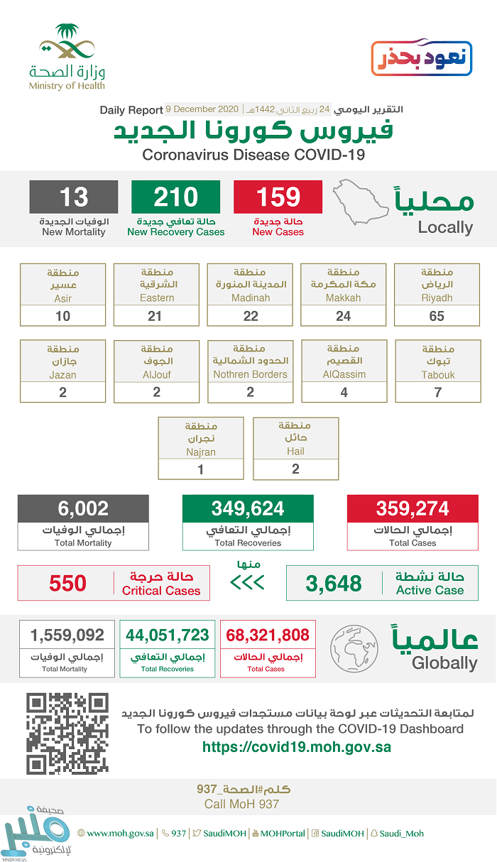 وجاء توزيع حالات الإصابة الجديدة بين مناطق المملكة كالتالي :