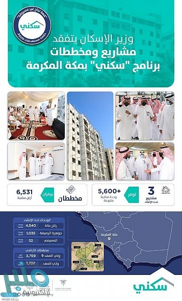 واطلع معاليه على سير العمل ومستوى الإنجاز في المشاريع ضمن زيارته لمنطقة مكة المكرمة التي تشهد تنفيذ أكثر من 22 مشروعًا سكنيًا توفّر 66,900 وحدة بالإضافة إلى 19 مخططًا سكنيًا توفر أكثر من 35 ألف أرض.