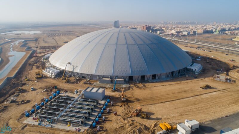 وزار سموه بخلال جولته المحافظة مشروع “قبة جدة، واستمع إلى شرح عن المشروع، الذي يعد أكبر قبة متصلة وأكبر قبة فراغية كروية في العالم، حيث ستكون مركزًا لاستضافة كافة المعارض والمؤتمرات والفعاليات المحلية والعالمية، وتبلغ مساحة الصالة 34.618م2، فيما تبلغ بارتفاع الصالة: 46 م، ومزودة بـ 5200 موقفًا للمركبات، وتبلغ مساحة الموقع کاملا 308 ألف م2 .