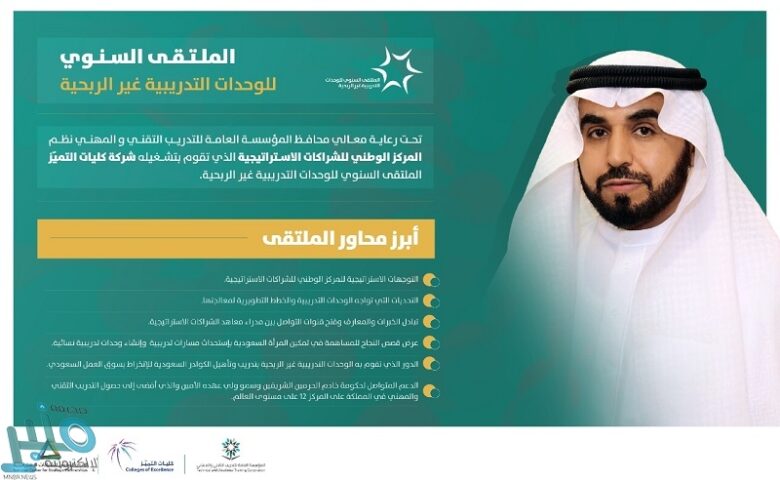 وعرض الملتقى الذي عقد برعاية معالي محافظ المؤسسة العامة للتدريب التقني والمهني الدكتور أحمد بن فهد الفهيد وحضور عدد من رؤساء مجالس إدارات الوحدات التدريبية غير الربحية والمدراء التنفيذيين، قصص النجاح النوعية لمعاهد الشراكات الاستراتيجية والمحفزة لمزيد من التميّز والإبداع، إلى جانب بحث استحداث مسارات تدريبية وإنشاء وحدات تدريبية نسائية.