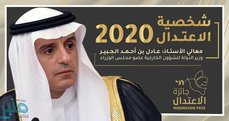 أعلن صاحب السمو الملكي الأمير خالد الفيصل مستشار خادم الحرمين الشريفين أمير منطقة مكة المكرمة، فوز معالي وزير الدولة للشؤون الخارجية عضو مجلس الوزراء الأستاذ عادل بن أحمد الجبير بجائزة الاعتدال للعام 1441هـ / 2020م.