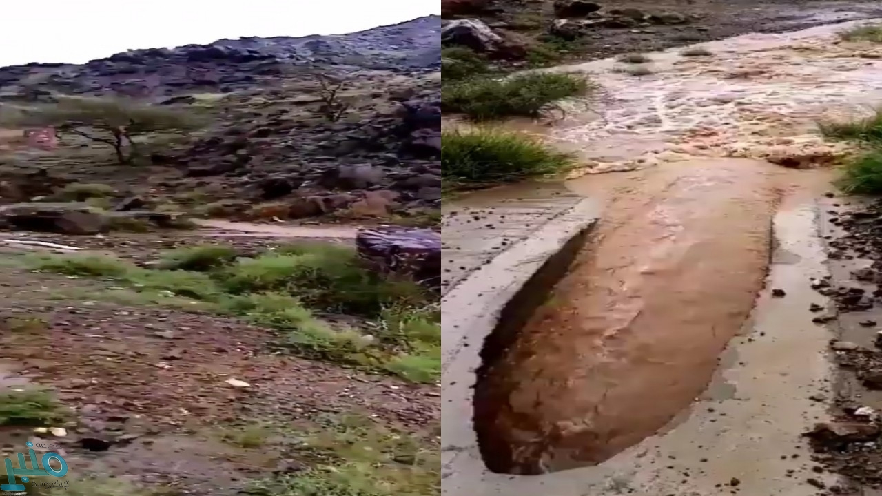 كشف مقطع فيديو، عن لحظة هطول الأمطار الغزيرة في جنوب شرق محافظة القنفذة، اليوم السبت.