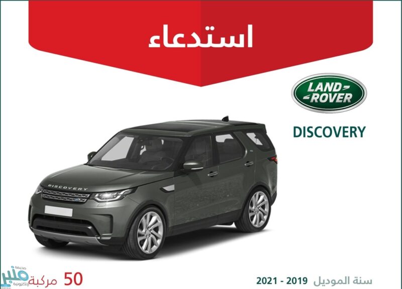 أعلنت وزارة التجارة، اليوم الأحد، عن استدعاء 50 مركبة لاند روڤر “DISCOVERY” موديل 2019 – 2021.