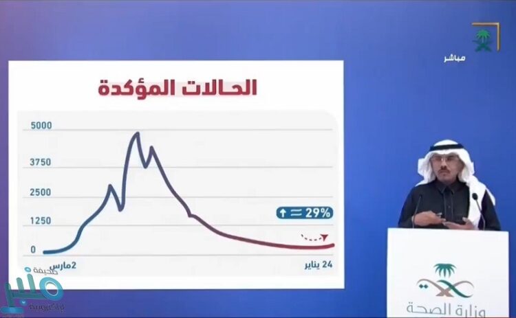 #عاجل_السعودية | متحدث #وزارة_الصحة: منحنى الإصابات المؤكدة لا يزال في مستويات متدنية ولكن نرصد ارتفاعًا في آخر أسبوع بلغ 29 ٪ عن الأسبوع الذي قبله، ولا نريد لهذا المنحنى أن يستمر بالتصاعد وذلك بتقيدنا بالاحترازات. pic.twitter.com/qC29JtVqgx