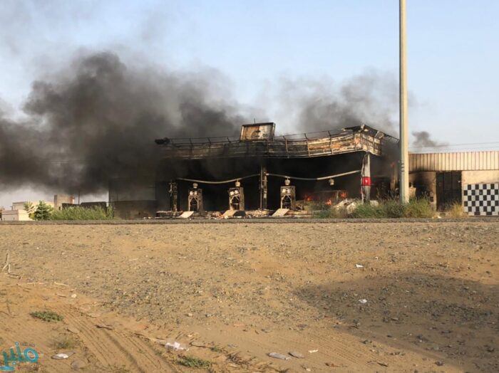 شب حريق، مساء اليوم الثلاثاء، في محطة وقود في مركز دوقة التابع لمحافظة القنفذة.