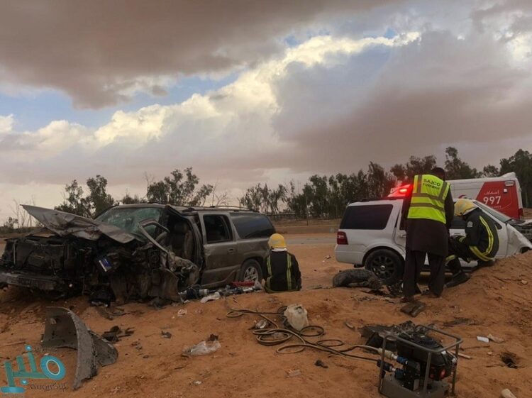 باشرت سبع فرق إسعافية تابعة لهيئة الهلال الأحمر بمنطقة الرياض مساء يوم السبت حادث تصادم والذي نتج عنه 9 إصابات.