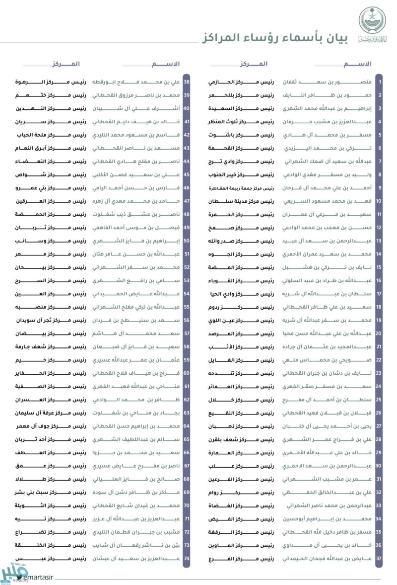 وأوضحت إمارة عسير، أن القرار جاء بعد مراجعة أوضاع رؤساء المراكز بالإمارة وعددها 131 مركزاً، وامتداداً للخطة التطويرية الشاملة للإمارة ومراكزها لإحداث نقلة نوعية في أساليب العمل وتحسين بيئته وتبسيط إجراءاته وتقديم كافة الخدمات للمواطن والمقيم بجودة عالية.