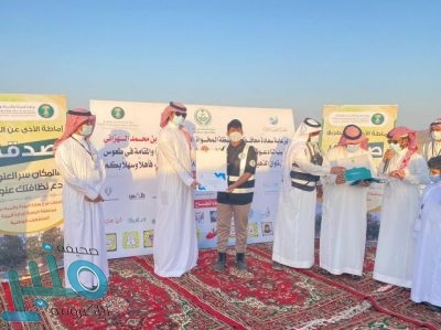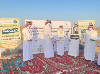 وبعد ذلك إعلان سعادة المحافظ إنطلاق المبادرة وتوجه الجميع إلى المواقع المستهدفة والتي تهدف إلى توصيل رسالة للجميع بالمحافظة على البىيئة ورفع الوعي لدى المتنزهين والسواح.