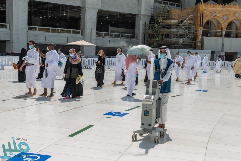 وقال عبدالمجيد عطية الفهمي من إدارة الوقاية البيئية ومكافحة الأوبئة بالمسجد الحرام أعمل على تعقيم المطاف بعدة معدات منها جهاز (البايوكير) الذي يعمل على تعقيم الأجواء والاسطح بالبخار الجاف حيث نقوم أنا وزملائي بإنزال من ٣ الى ٦ أجهزه في الجولة الواحدة، وأشعر بارتياح نفسي أثناء العمل لأنني اعتبره إنجاز عظيم كما أشعر بالفخر كوني أمثل الشباب السعودي الطموح القادر على القيام والعمل في حال حصل على الفرصة، علاوة عن شعوري بسعادة عظيمة كوني أعمل في المسجد الحرام وبغض النظر أن كان العمل في أي إدارة أو أي مهنة أخرى لطالما كان العمل في خدمة المسجد الحرام وضيوف الرحمن.