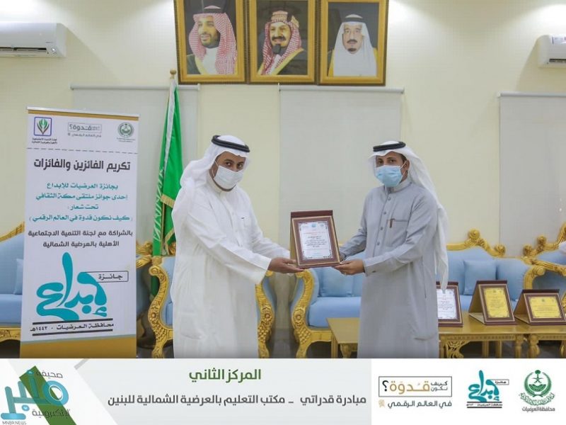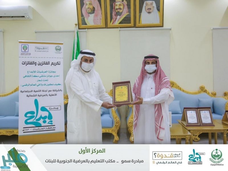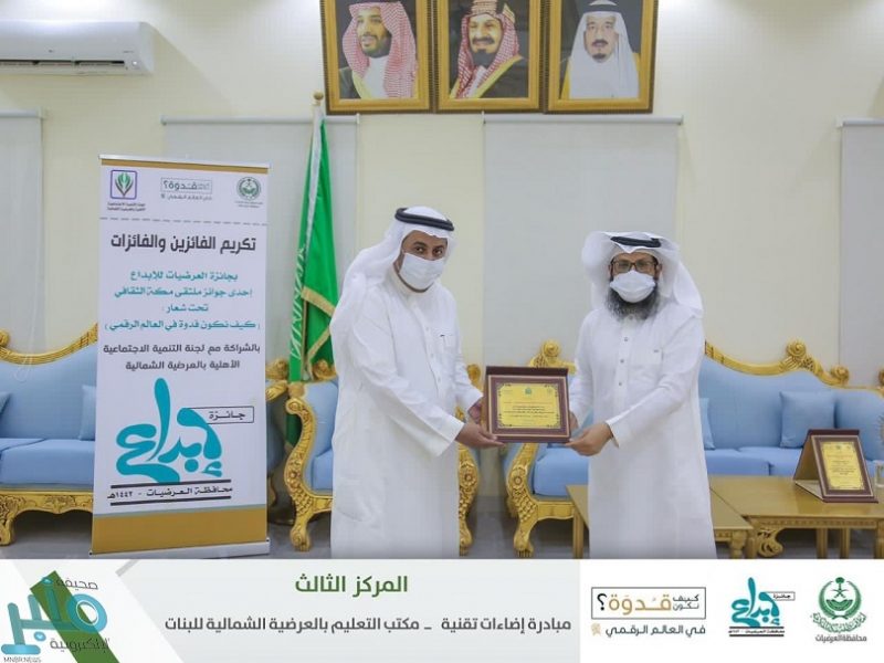 وأضاف: “يشرفني أن أعلن الفائزين بجائزة الإبداع الرقمي بمحافظة العرضيات لعام 1442 هـ، وحصل على المركز الأول مبادرة “سمو” بمكتب العرضية الجنوبية للبنات، وحصل على المركز الثاني مبادرة “قدراتي” بمكتب التعليم بالعرضية الشمالية للبنين، والمركز الثالث مبادرة “إضاءات” بمكتب التعليم بالعرضية الشمالية للبنات”