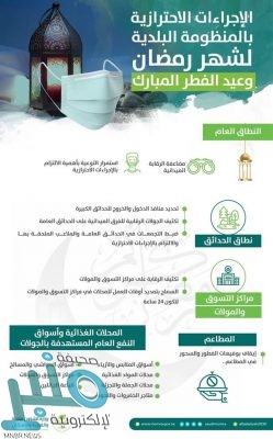 أعلنت وزارة الشؤون البلدية والقروية والإسكان عن تحديد الإجراءات الاحترازية للأنشطة الخاضعة لإشراف القطاع البلدي في شهر رمضان وعيد الفطر المبارك.