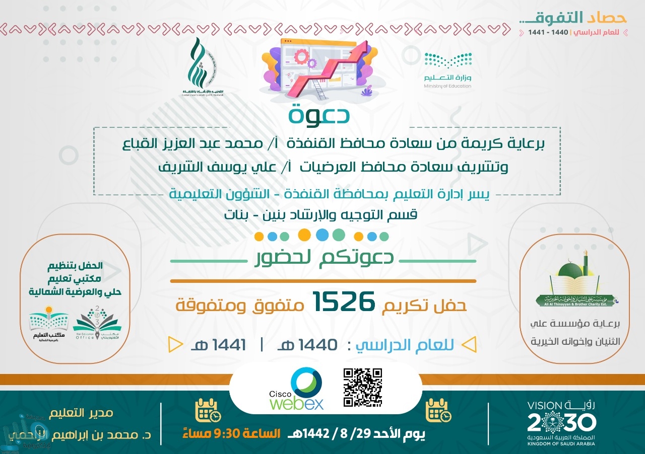 التعليم الدكتور محمد بن إبراهيم الزاحمي، حفل تكريم ١٥٢٦ متفوقاً ومتفوقة للعام الماضي المنصرم ١٤٤٠ / ١٤٤١ ، “عن بعد ” عبر برنامح Webx ،بتنظيم مكتبي تعليم حلي والعرضية الشمالية .