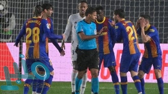 وشوهد جيرارد بيكيه، قائد برشلونة، يدخل الملعب بعد المباراة ليعاتب الحكم، كما فعل نفس الأمر المدرب رونالد كومان.