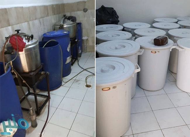 وأشار الدقس إلى أن الأمانة شكلت على الفور فريقاً رقابياً بالتنسيق مع الجهات الأمنية، وجرى ضبط 17 حاوية سعة 85 لتر و 42 عبوة جاهزة للتوزيع، بالإضافة لمواد تستخدم في الإنتاج والتصنيع داخل الموقع من اسطوانات غاز وشبكة تمديد وبراميل تحضير، وتم مصادرات الأدوات وإتلاف المواد المسكرة على الفور وفق الإجراءات الصحية المتبعة واستكمال الإجراءات النظامية حيال الموقع، فيما باشرت الجهات الأمنية اختصاصها تجاه العمالة المخالفة.