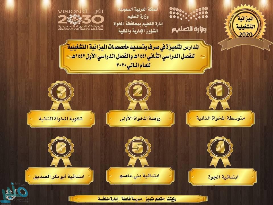 كما وجّه “الجالوق” شكره وتقديره للمدارس المتميزة في صرف وتسديد مخصصات الميزانية التشغيلية للفصل الدراسي الثاني للعام ١٤٤١ هـ والفصل الدراسي الأول للعام١٤٤٢هـ.