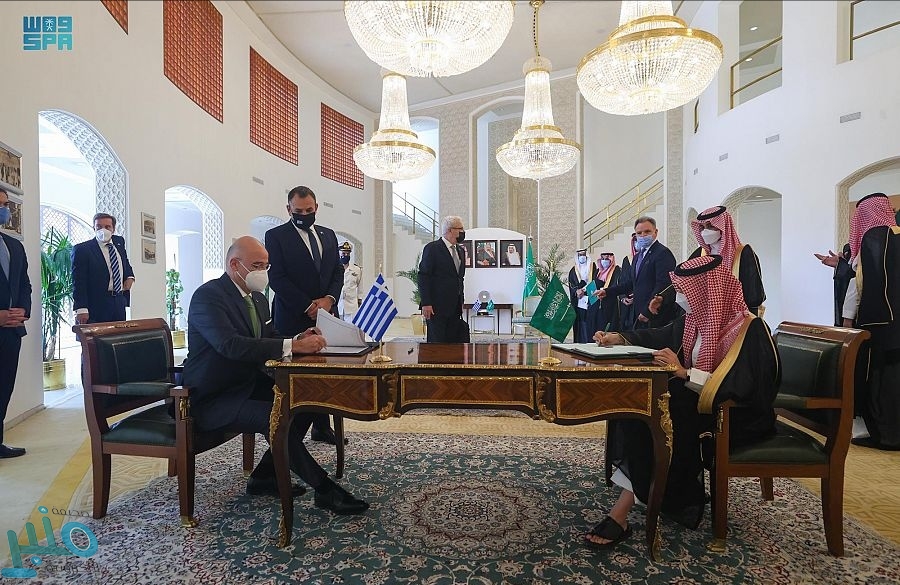 وفي بداية الاستقبال وقع سموه ووزير الخارجية اليوناني على اتفاقية بين البلدين الصديقين بشأن مشروع الترتيبات الخاصة بالوضع القانوني للقوات المسلحة اليونانية المشاركة في دعم القدرات الدفاعية للمملكة، وذلك بحضور معالي وزير الدفاع اليوناني.