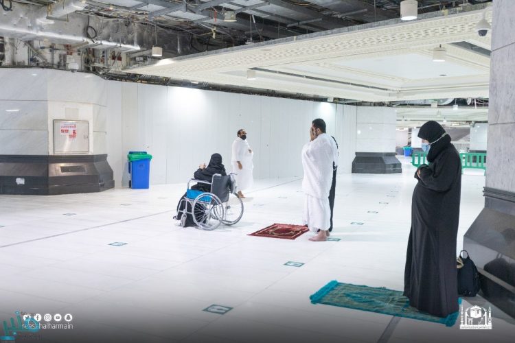 دشنت الرئاسة العامة لشؤون المسجد الحرام والمسجد النبوي مصلى سنة الطواف الواقع ببدروم صحن المطاف للأشخاص ذوي الإعاقة وكبار السن، بطاقة تستوعب لـ 150 مصلى، محدد بملصقات تباعد لسلامة قاصدي بيت الله الحرام، لأداء سنة الطواف، ومن ثم الذهاب إلى المسعى لاستكمال مناسكهم .