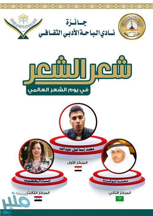 أعلن نادي الباحة الأدبي الثقافي أسماء الفائزين بجائزته التي أطلقها في يوم الشعر العالمي تحت عنوان (شعر الشعر) وقد بلغ عدد المتسابقين (351) شاعرا وشاعرة من 15 دولة هي: السعودية، مصر، العراق، موريتانيا، لبنان، سوريا، السنغال، المغرب، اليمن، الجزائر، البحرين، غامبيا، الأردن، السودان، فلسطين.