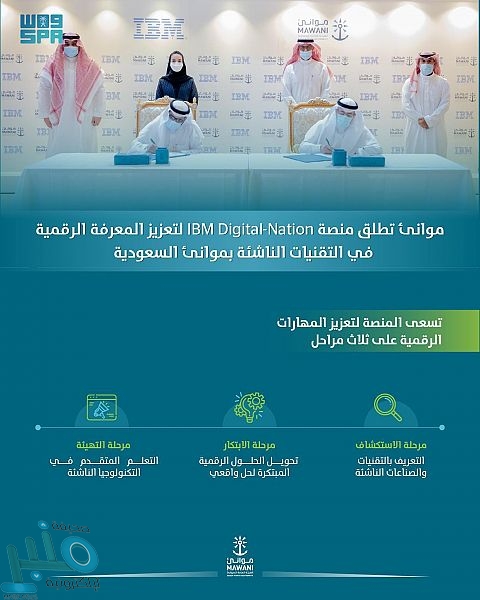 أعلنت الهيئة العامة للموانئ “موانئ” اليوم، عن تعاونها مع شركة “أي بي إم”، لإطلاق برنامج تجريبي يقدم منصة (IBM Digital-Nation) لموظفيها في جميع أنحاء المملكة ،التي تعدّ نظاماً أساسياً للتعلم والابتكار عبر “الإنترنت” وذلك تماشياً مع مستهدفات رؤية المملكة 2030 ؛لتعزيز الثقافة الرقمية والاقتصاد الوطني.