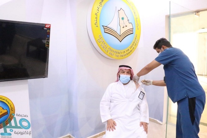 منسوبو فرع الرئاسة العامة لهيئة الأمر بالمعروف بمكة يتلقون الجرعة الأولى من لقاح فيروس كورونا