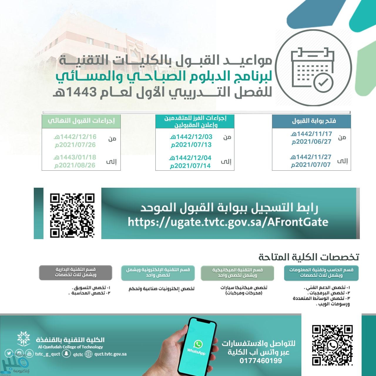 تقنية القنفذة تعلن مواعيد القبول والتسجيل لبرنامج الدبلوم