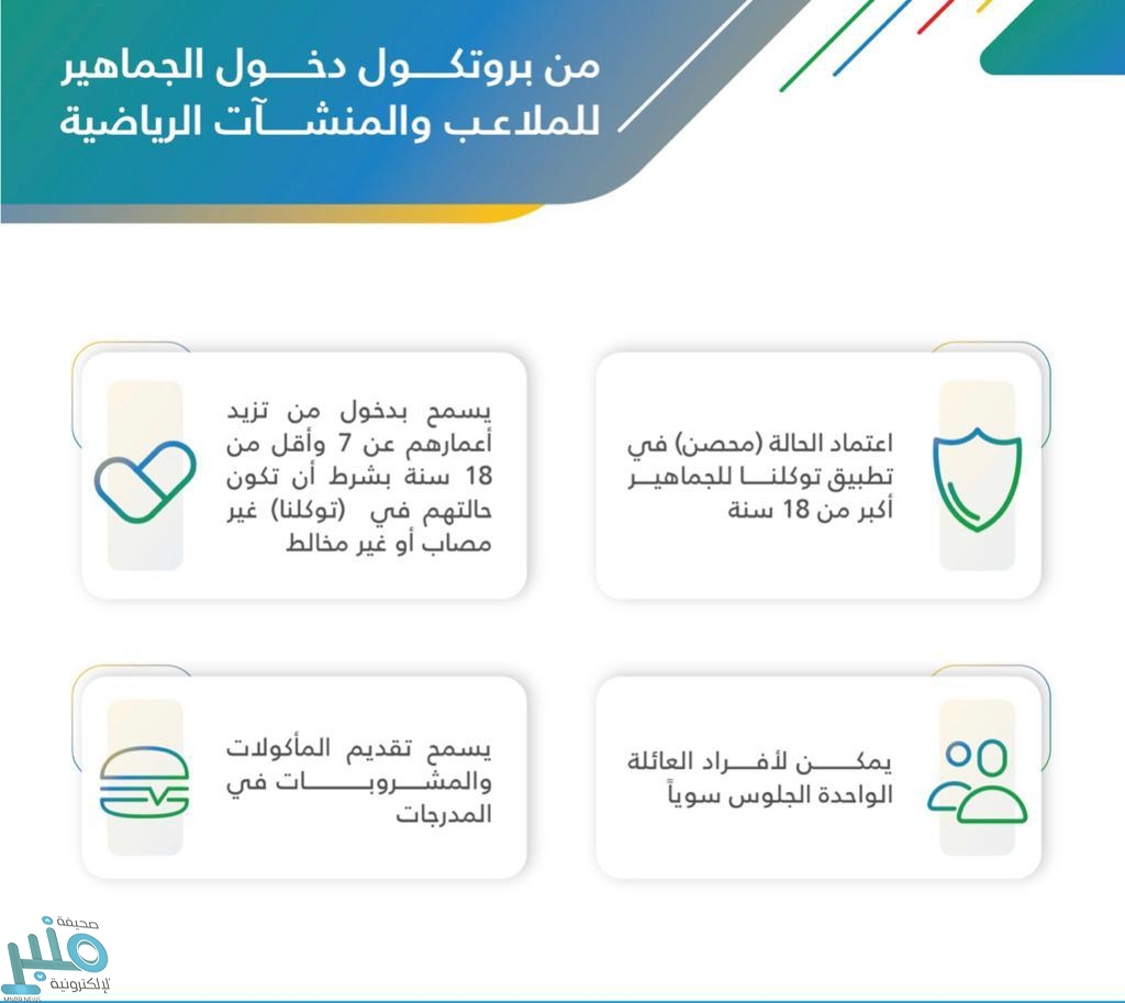 وكان وزير الرياضة رئيس اللجنة الأولمبية الأمير عبدالعزيز بن تركي الفيصل، قد وجه الاتحادات والأندية الرياضية والجهات المعنية في القطاع الرياضي، باتخاذ جميع الإجراءات والتدابير اللازمة؛ لتسهيل دخول الجماهير للملاعب والمنشآت الرياضية، تزامناً مع القرار الصادر بالسماح بحضور ما لا يزيد على 40% من سعة هذه الملاعب أو المنشآت، وفقاً لـ«البروتوكول» الصادر من وزارة الرياضة.