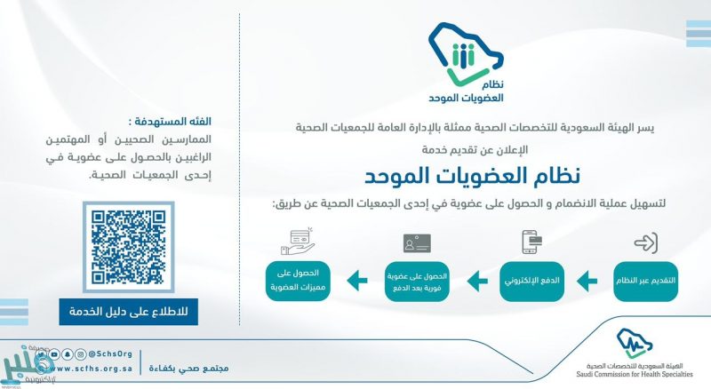 فعلت الهيئة السعودية للتخصصات الصحية خدمة نظام العضويات الموحد للجمعيات الصحية المندرجة تحت إشرافها، بهدف أتمتة وتنظيم آلية قبول العضويات في الجمعيات الصحية بشكل كامل.