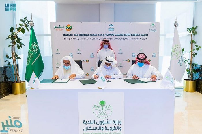 وقّع برنامج الإسكان التنموي اتفاقية ثلاثية الأطراف مع جمعية نفع الخيرية بمنطقة مكة المكرمة ومؤسسة الإسكان التنموي الأهلية “سكن”، بهدف توفير 4000 وحدة سكنية للأسر الأشد حاجة بمنطقة مكة المكرمة لتمكينهم من تملك المسكن، وذلك بحضور معالي وزير الشؤون البلدية والقروية والإسكان الأستاذ ماجد بن عبد الله الحقيل.