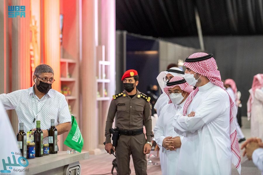 ثم شاهد سموه مطبخ الزيتون الذي يشارك فيه أبرز الطباخين في الوطن العربي واطلع على أبرز الطبخات التي تحتوي على الزيتون وزيت الزيتون.