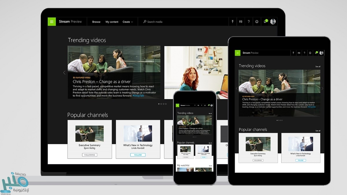 وتستطيع من خلال Stream أن تعرض الفيديو إما من تسجيل سابق وإما من خلال بث مباشر للاجتماع في نفس الوقت الذي يحدث فيه، هذا مفيد لمساعدة العاملين من المنزل وتطويرهم.