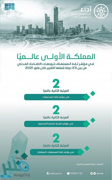 كما حققت المملكة المرتبة الثانية عالميًا من بين 23 دولة في المؤشر العام “ثقة المستهلك” لذات الشهر، إضافة لتحقيقها المركز الثاني في نتائج مؤشر “القدرات المالية الشخصية”، والمرتبة الثانية في مؤشر “ثقة المستهلك للاستثمار”.