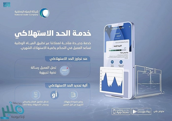 ويتضمن التطبيق خدمة الحد الاستهلاكي التي وعدت بها شركة المياه الوطنية عملاءها في وقت سابق لمساعدتهم على التحكم في استهلاكهم، ويضع التطبيق حداً مبدئياً، يستطيع العملاء تغييره من خلال الدخول إلى التطبيق، إما مباشرة عبر وضع حد معين، أو الاستفادة من الذكاء الاصطناعي، والإجابة على مجموعة أسئلة تساعد التطبيق على صناعة حد مخصص للعميل بناء على تفاصيل عقاره، وعدد السكان ومساحة الحديقة، وعدد الأشجار الكبيرة، لتصل للعميل رسائل نصية تنبيهية في حال تجاوزه الحد الاستهلاكي.