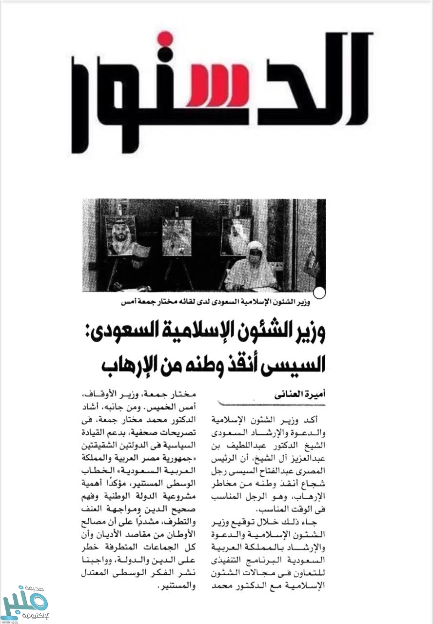وأبرزت الصحف المصرية تصريحات وزير الأوقاف المصري وإشادته بالعلاقات المصرية – السعودية، حيث أعرب عن تقديره الكبير لخادم الحرمين الشريفين الملك سلمان بن عبد العزيز آل سعود، وسمو ولي عهده الأمين -حفظهما الله- على جهودهما في خدمة قضايا الأمة وخدمة الحرمين الشريفين، كما وصف التطوير الذي تنفذه وزارة الشؤون الإسلامية السعودية والتصدي للجماعات المتطرفة وتخليص المنابر الدعوية منها بقيادة الوزير الدكتور “عبداللطيف آل الشيخ” بالكبير والشجاع والذي سيقف له التاريخ.