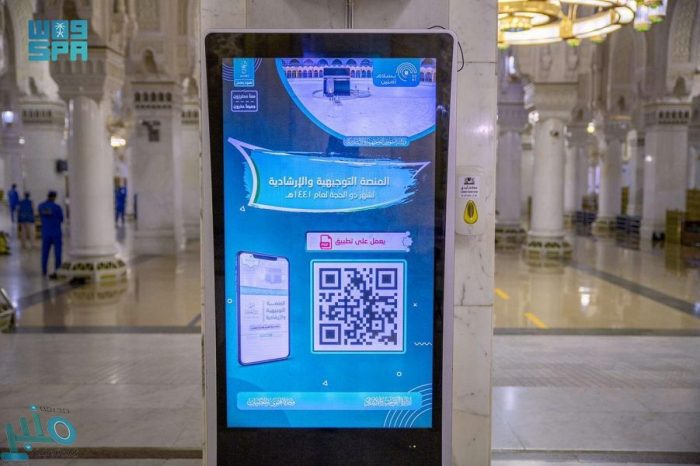 هيأت الإدارة العامة للحشود والتفويج والإدارة العامة للمشاريع بالرئاسة العامة للمسجد الحرام والمسجد النبوي (100) لوحة إرشادية وإلكترونية بالمسجد الحرام وساحاته وذلك لضمان تكامل الخطة التوجيهية للحجاج والمعتمرين في موسم الحج لعام1442هـ.