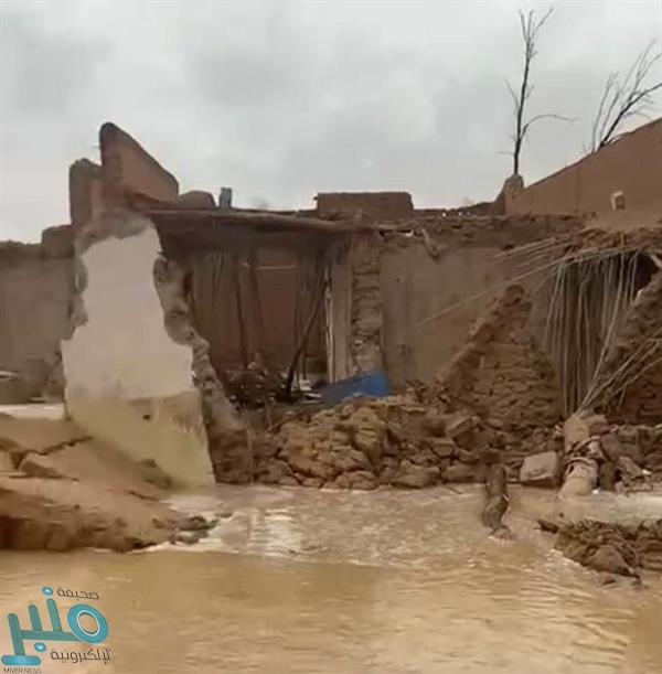 ووثق حساب “الطقس في الأفلاج” عبر مقطع فيديو مشهد انهيار أحد البيوت الطينية المهجورة قديمًا في منطقة نجد، بعدما غمرتها مياه الأمطار من كل مكان.