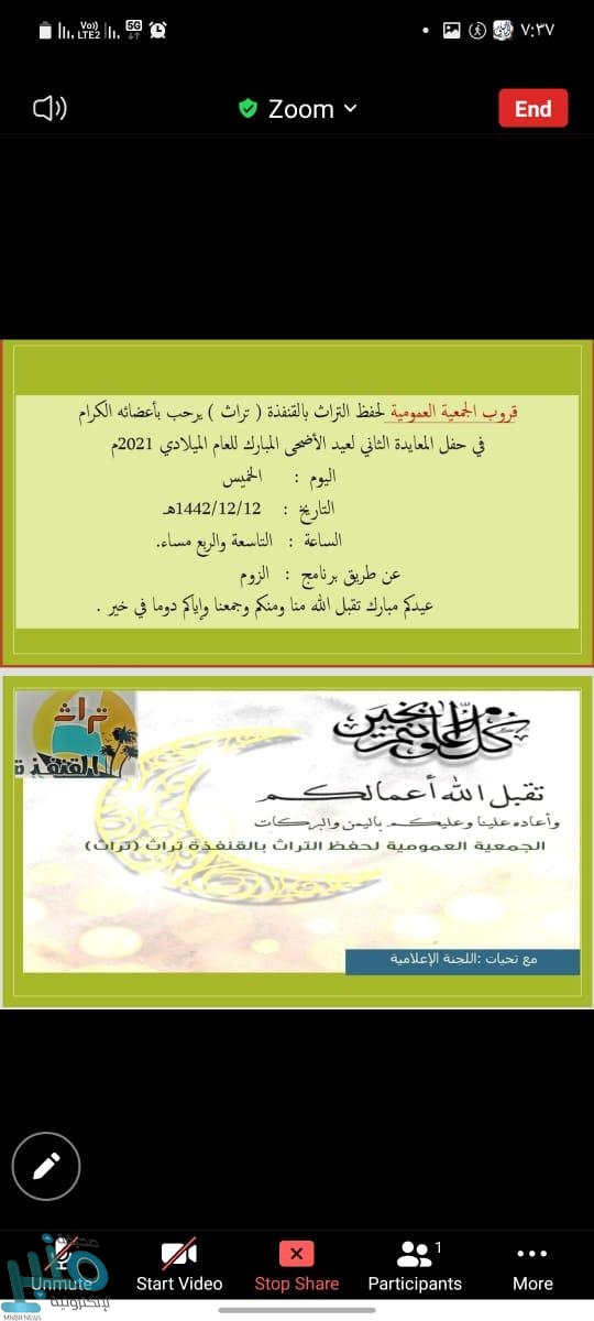 جمعية تراث القنفذة تقيم برنامج معايدة لمنسوبيها عن بعد
