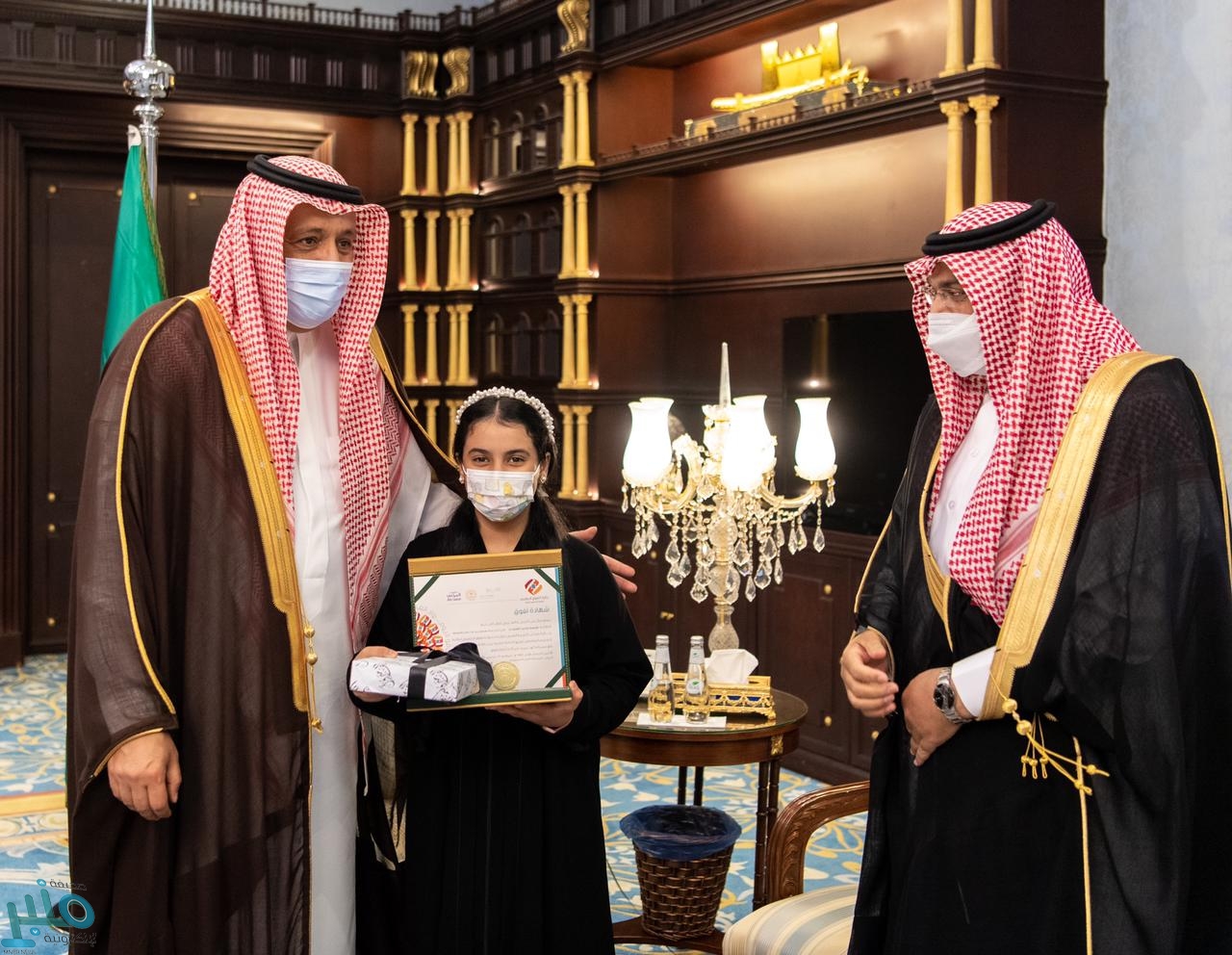كما سلم سموه لمديرة مجمع زينب بنت علي بالمصنعة، مريم علي الغامدي شهادة شكر وتقدير من مكتب التربية العربي لدول الخليج.