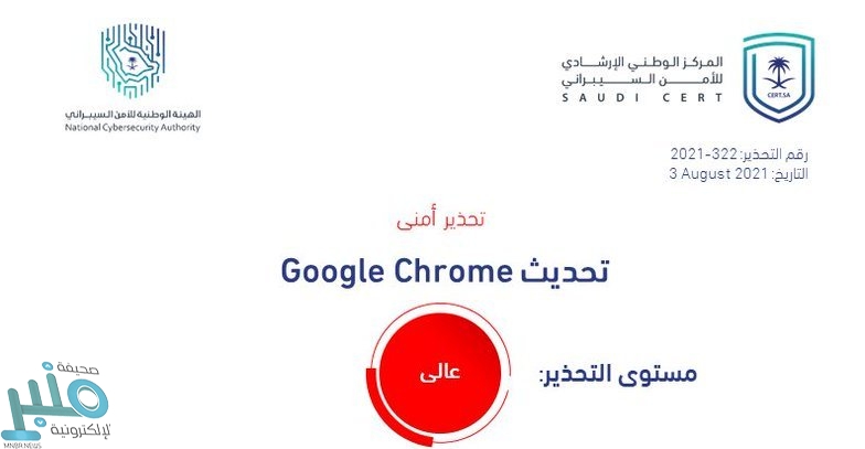 أطلق المركز الوطني الإرشادي للأمن السيبراني، التابع للهيئة الوطنية للأمن السيبراني، تحذيرًا أمنيًا عالي الخطورة بخصوص تحديث في متصفح Google Chrome.