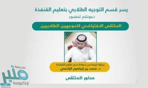 عقد مدير التعليم بمحافظة القنفذة الدكتور محمد إبراهيم الزاحمي اليوم الخميس الموافق 18 /1 /1443هـ، اجتماعًا بمنسوبي التوجيه الطلابي، تزامناً مع العودة الحضورية للطلاب مكتملي جرعتي كوفيد19 إلى مدارسهم يوم الأحد القادم 21 /1 / 1443هـ ، وفق إجراءات احترازية.