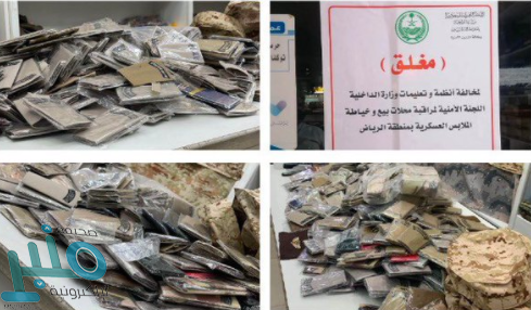 أغلقت اللجنة الأمنية لمتابعة محلات تفصيل الملابس العسكرية في إمارة منطقة الرياض محلًا مخالفًا لتفصيل الملابس العسكرية، كما ضبطت (100) بدلة لقطاعات عسكرية مختلفة و(300) قطعة من الرتب والشعارات العسكرية المخالفة، وكميات كبيرة من الأقمشة العسكرية، كما ضُبط اثنان من مجهولي الهوية، وسلم المخالفون للدوريات الأمنية.
