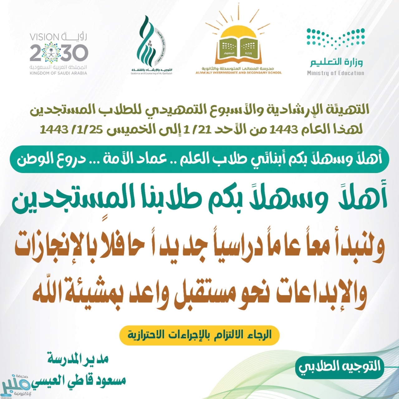 حيث أنهالت عبارات الترحيب بأبنائهم الطلاب، تخللتها نبرة التفاؤل بعام دراسي استثاني، يتلاءم ورؤية 2030، وهذا ليس غريبًا على رجال الميدان فرسان التوجيه الطلابي، فهذا غيض من فيض من جهودكم المباركة التي يبذلونها مع أبنائهم الطلاب طوال مسيرة رحلتهم التعليمية.