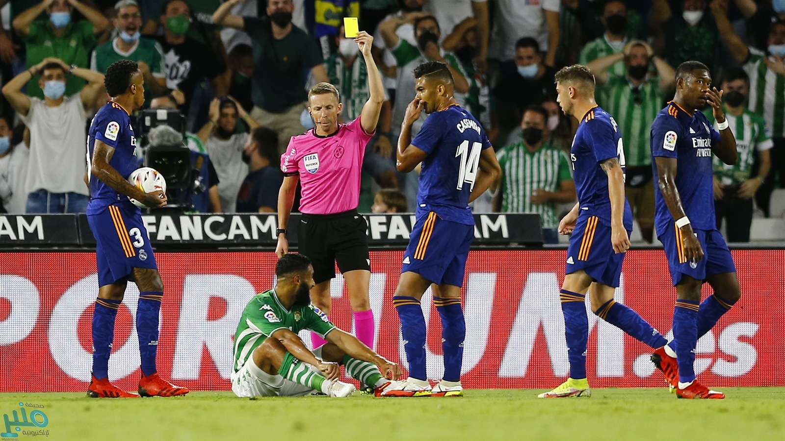 وشهدت الدقيقة 58، تدخل كاسيميرو على أحد لاعبي ريال بيتيس، ولكنه عرقل حكم المباراة أليخاندرو خوسيه ليسقط الثنائي على أرض الملعب وسط ضحك متبادل، لينتهي الموقف سريعًا.