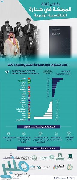 صُنفت المملكة العربية السعودية الثانية عالميا بين دول مجموعة العشرين ضمن تقرير التنافسية الرقمية لعام 2021 الصادر من المركز الأوروبي للتنافسية الرقمية.