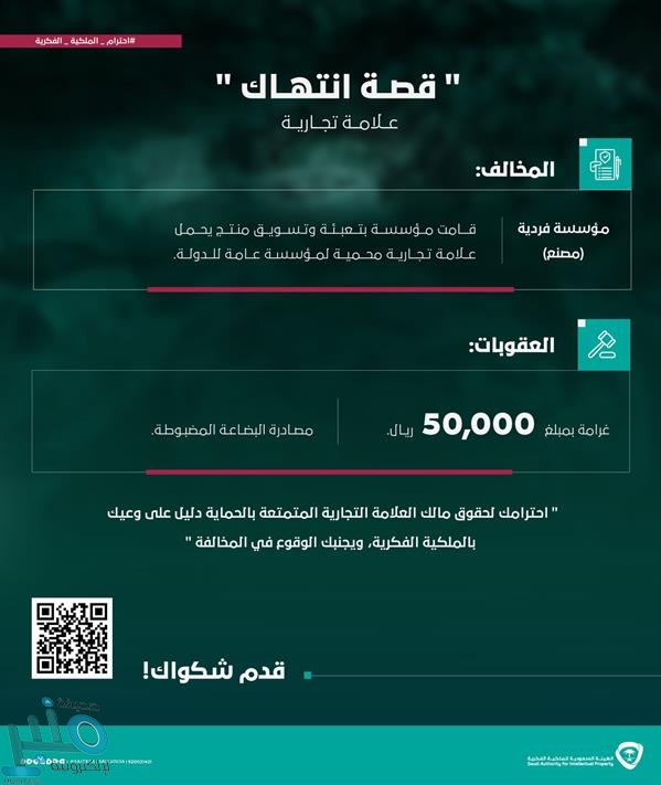 كشف المتحدث الرسمي للهيئة السعودية للملكية الفكرية، ياسر الحكمي، اليوم الجمعة، عن قصة مخالفة ارتكبتها إحدى الشركات لنظام الهيئة.