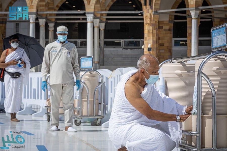 وأوضح وكيل الرئيس العام لشؤون الخدمات والشؤون الميدانية وتحقيق الوقاية البيئية محمد الجابري أن وكالة الشؤون الميدانية وتحقيق الوقاية البيئية في المسجد الحرام قامت بتوزيع الحافظات داخل المسجد الحرام وفق جميع الإجراءات الاحترازية، وأنه يتم تعبئة الحافظات في المجمعات المخصصة والمهيئة لذلك، حيث يتم فحص ماء زمزم فيها من خلال أخذ (70) عينة يومياً للتأكد من سلامتها.