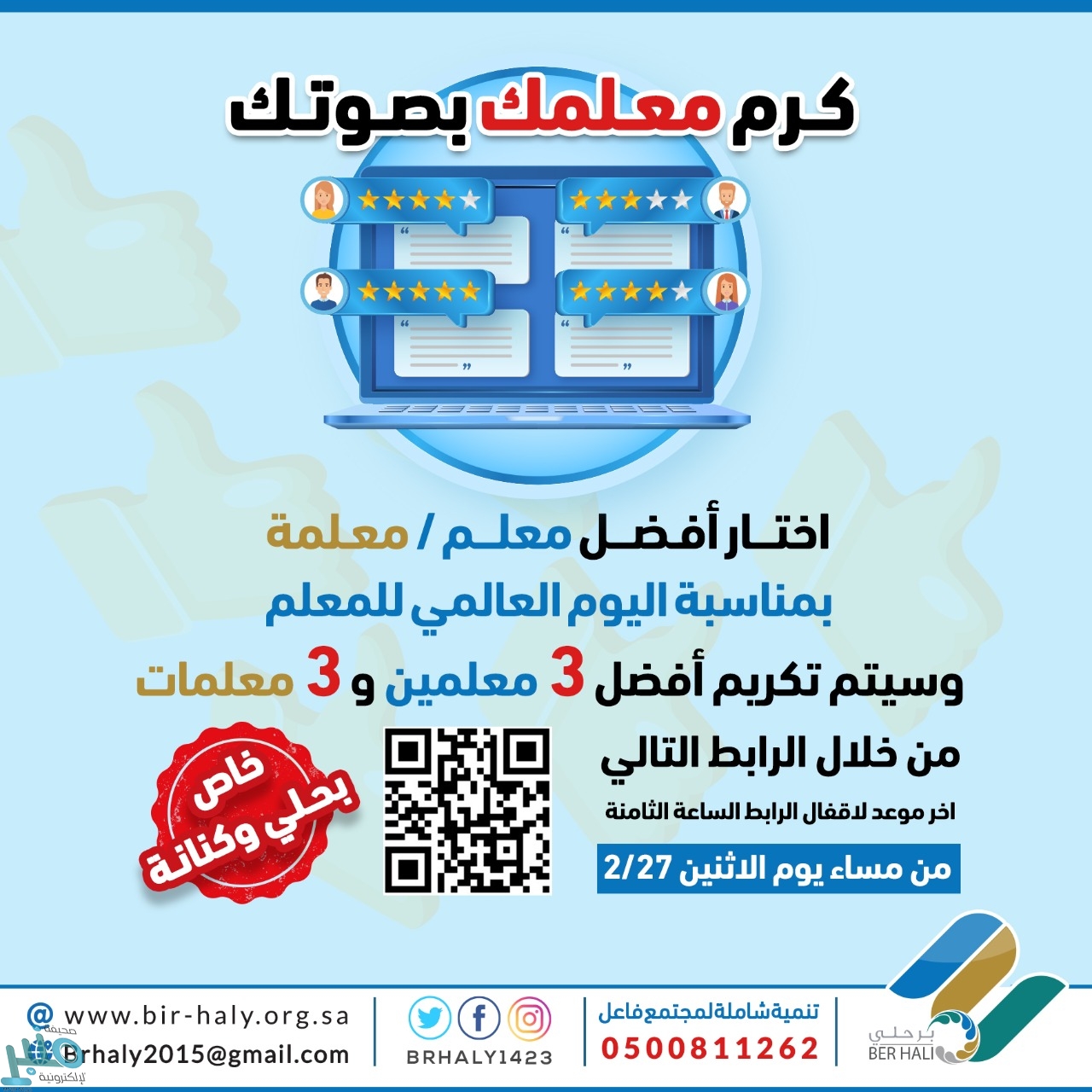 اليوم العالمي للمعلم, جمعية البر, وادي حلي
