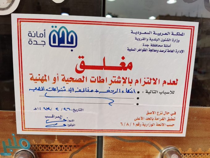وأوضحت الأمانة أن تكثيف الجهود الرقابية شمل نطاق 19 بلدية فرعية, و15 بلدية محافظة، رصدت خلالها الفرق الميدانية 20 مخالفة، تنوعت ما بين عدم الالتزام بالتباعد وعدم التقيد بلبس الكمامة بالشكل الصحيح، والتساهل في قياس حرارة العملاء, أو في الإلزام بإبراز تطبيق توكلنا، وغيرها من مخالفات التعليمات الوقائية.